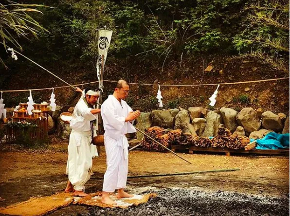 白装束の坊主頭が足裏を火傷するという