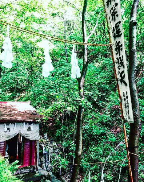 禊として滝行をおこなった後、