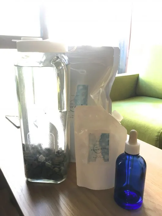 この水を飲むときは、例の塩と、液体ミネラルを加えます。