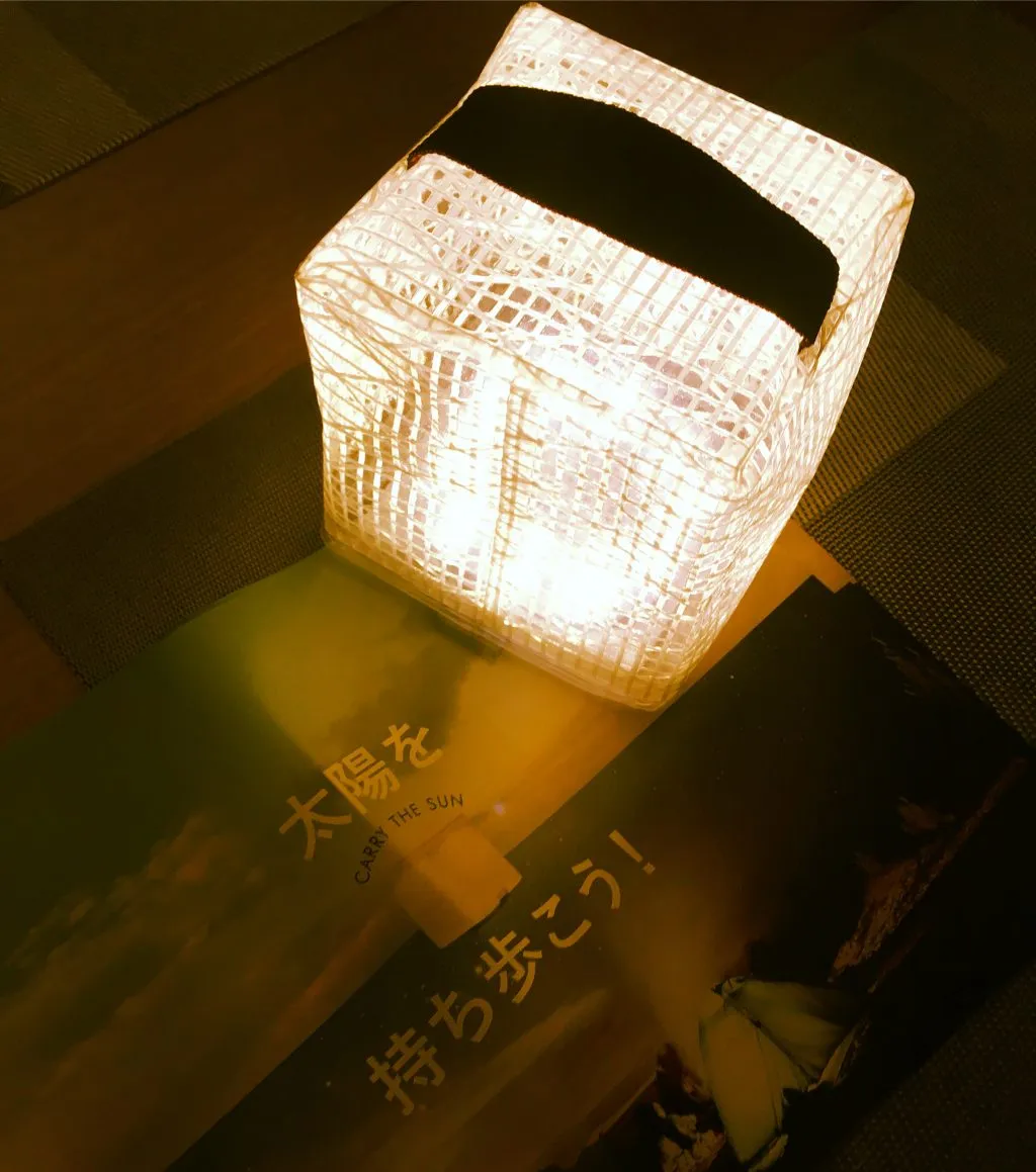 紙風船のように膨らませるエアランタンです。上部に内蔵されたソーラーパネルで充電でき、太陽のように闇を明るく照らします。